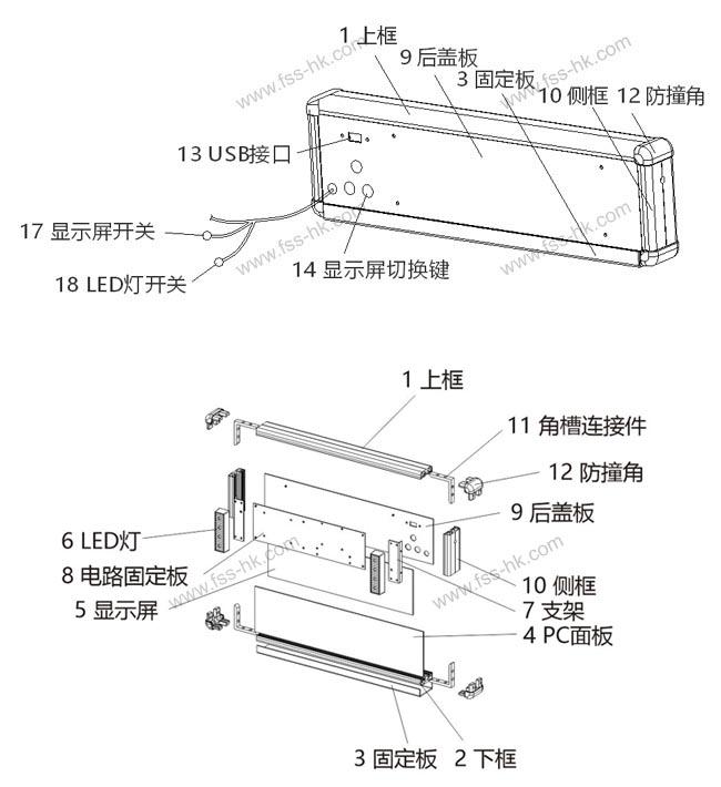 | 显示方式 | 多种显示方式可选择设置 | 外型尺寸 | 408 x118 x 40 mm |
